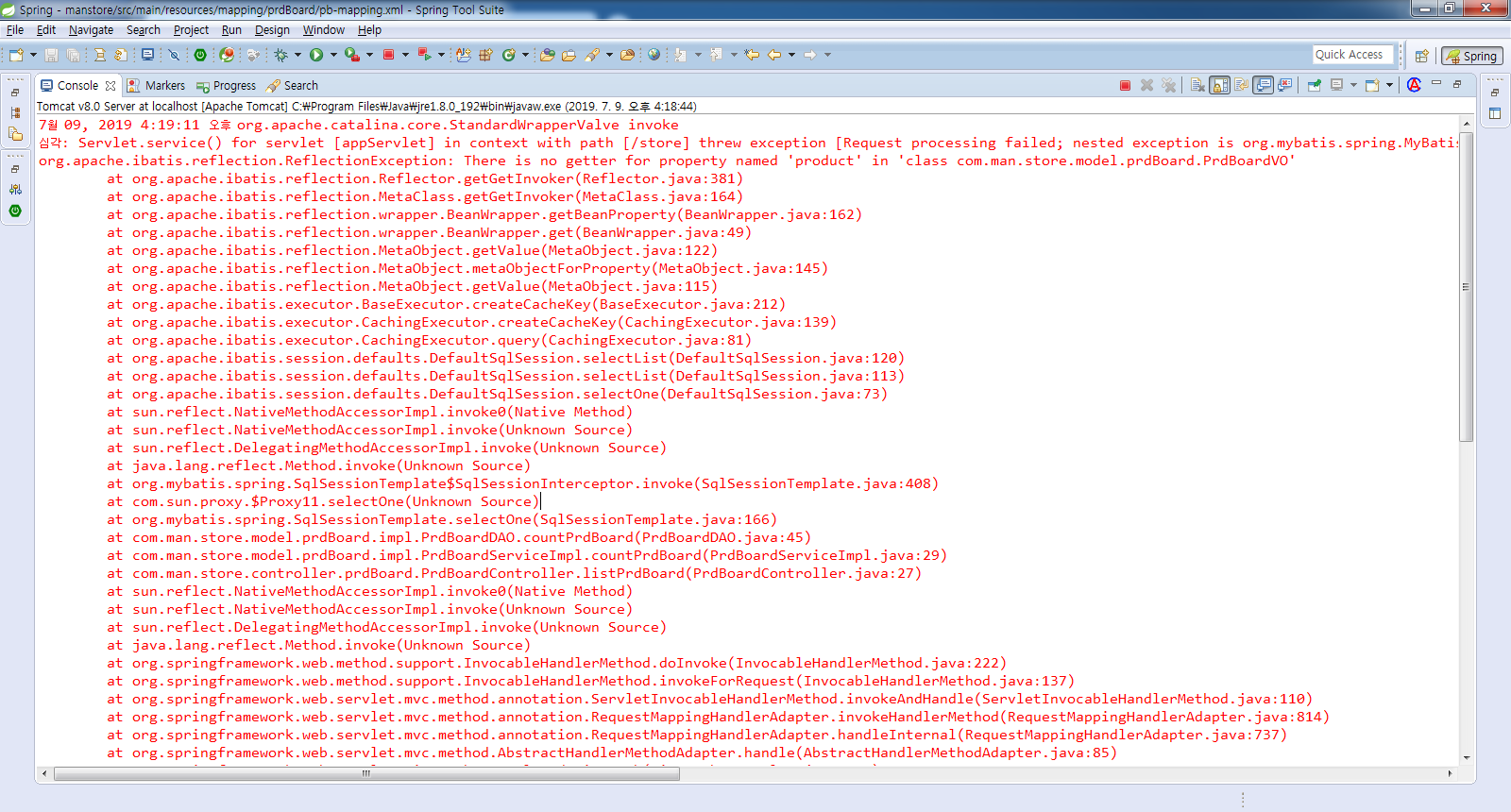 1. service단에서 myBatis를 호출하는 과정에서 잘못 됐다.
