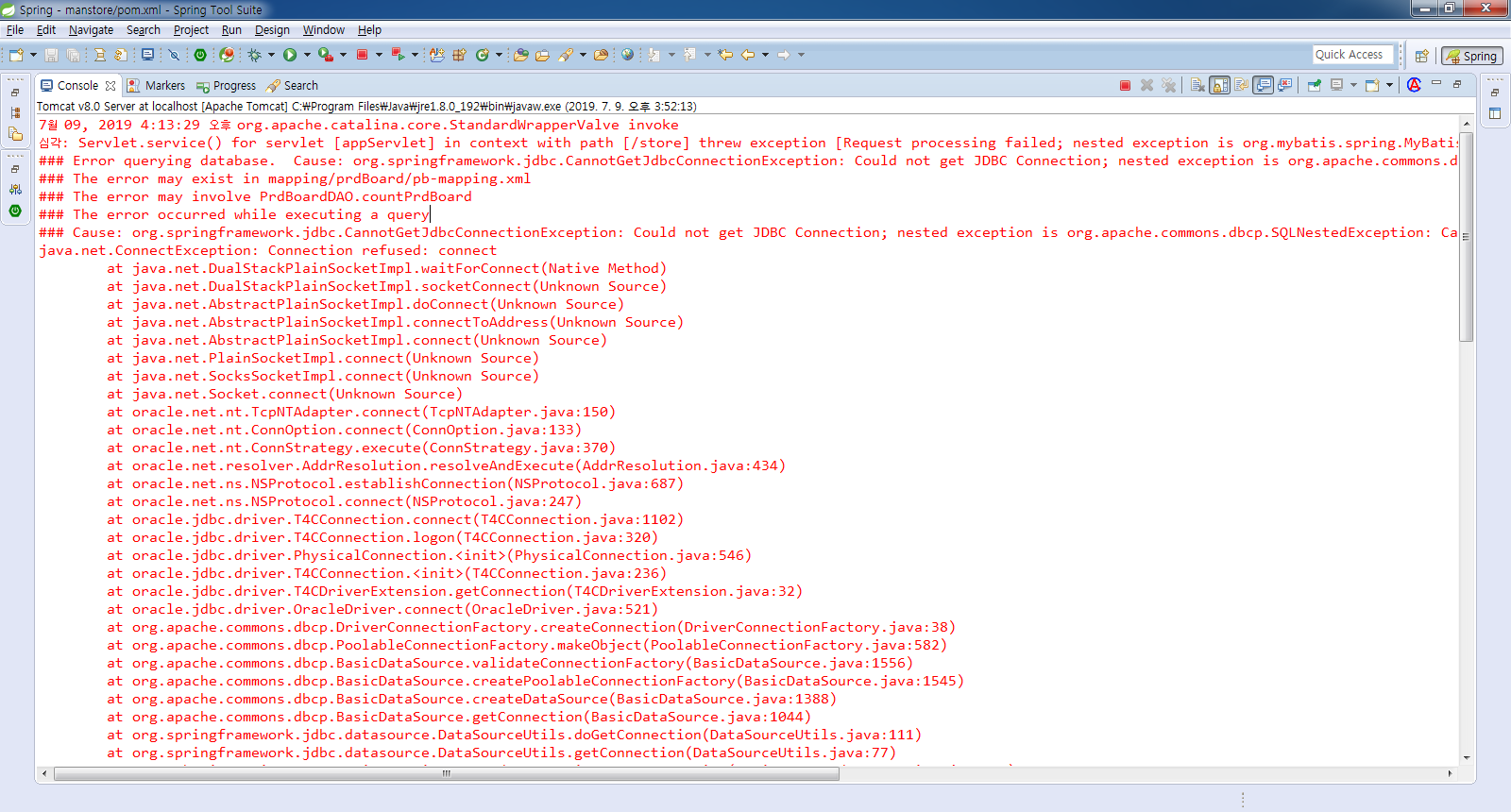 DB 연결 관련 문제인 것 같다.