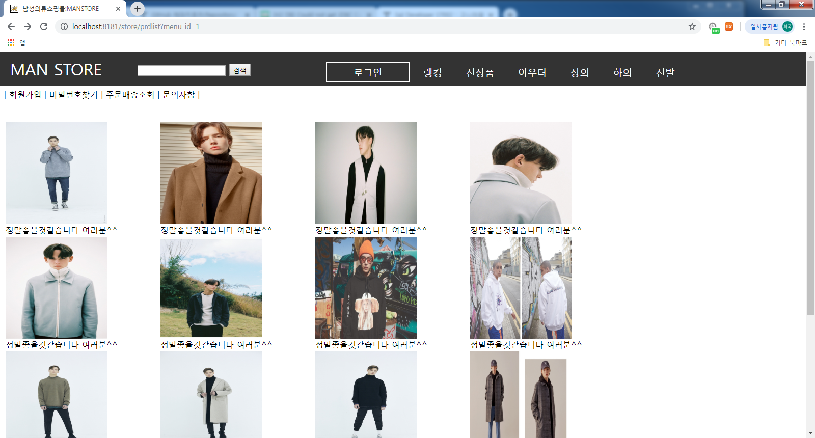 하지만 그렇게 안심하기도 전에 상품 카테고리 "아우터"를 클릭하자 500 에러가 났다.