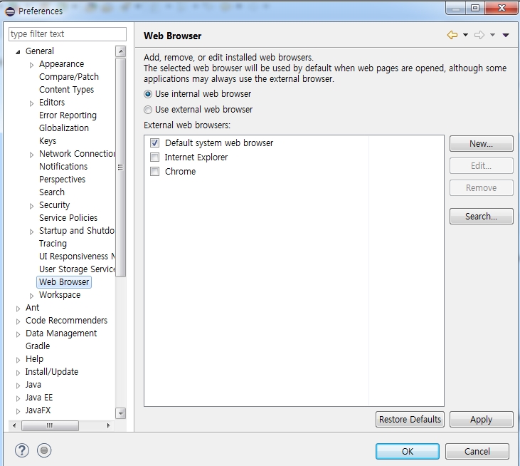 그럼 여기서 자신이 원하는 웹브라우저를 선택하고 Apply > OK 하면 끝난다.