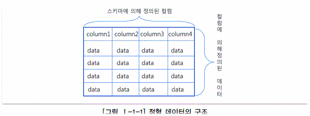 1. 정형 데이터(Structered DATA): 데이터 타입, 데이터 길이, 속성(Attribute)와 레코드(Record)가 있는 형태이다.