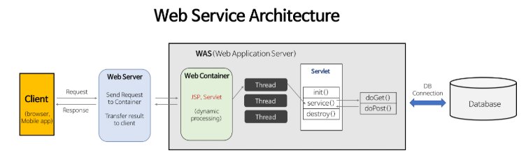 - 웹 서버는 웹 문서를, WAS는 JSP페이지 등을 양분하여 서버 부담을 줄이는 것이 가능하다.