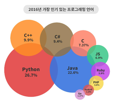 - 웹/앱에서 인공지능까지 인기가 급상승하며 주목받고 있는 언어이다.