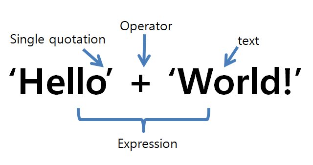 주의할점은 숫자와 문자 끼리는 ( + )를 쓸수 없다.