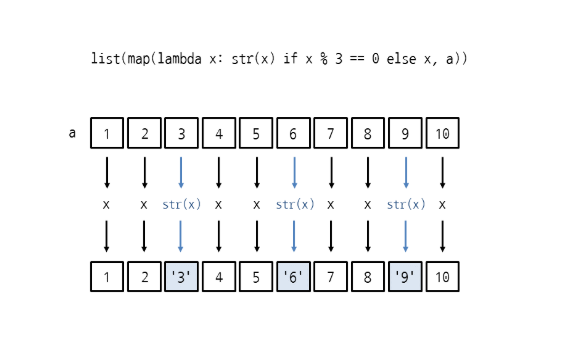 map( 함수, 반복 가능한 자료형 )