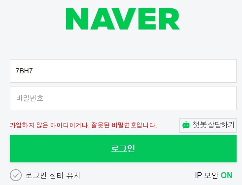 로그인 실패시 > 페이지는 이동하지 않고, 로그인 화면에서 빨간 글씨로 안내한다.