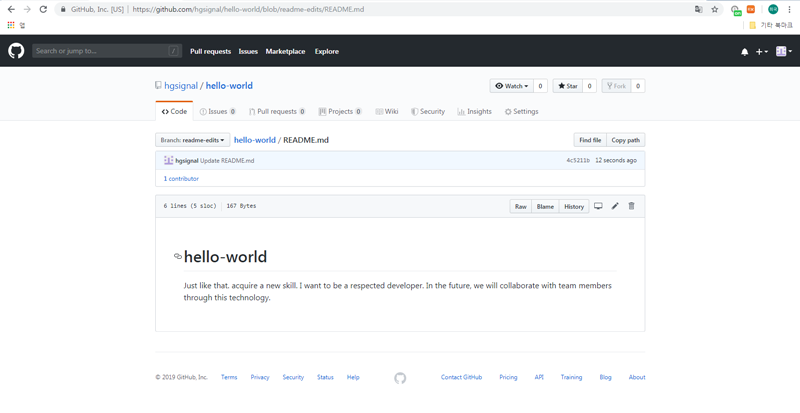 새로운 저장소를 만들고, pull 요청과 커밋, 병합하는 것을 연습할 것이다.