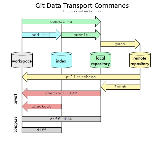 - git 의 원리는 workspace > (add) > index > (commit) > local repository > (push) > remote repository (index = staging area)
